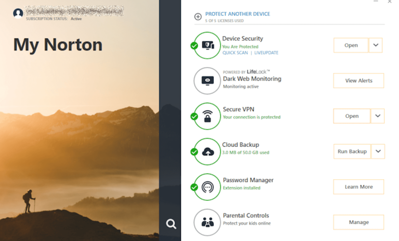 Getting started with Norton 360 is extremely simple. The first step is downloading and installing the software, which is available for PCs, Macs, and iOS and Android devices. Once you open the software and login to your account, you can see how many licenses you have and how many you are using.