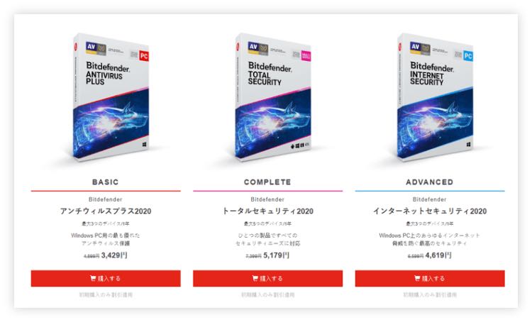 Bitdefender Completeは、年間5,179円で最大3台のコンピューターに利用可能です。Bitdefender Advancedは、年間4,619円で最大5台のコンピューターに対応します。