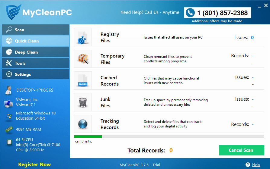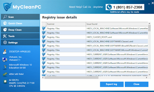 MyCleanPC’s main feature is its scanning tool which comes in 2 variants: quick clean, which is designed to scan the most commonly compromised parts of computers, including registry files, tracking records, and cached records, and deep clean which really gets under the hood of the system identifying corrupted and missing Registry items that could have knock-on effects on other parts of the filesystem.