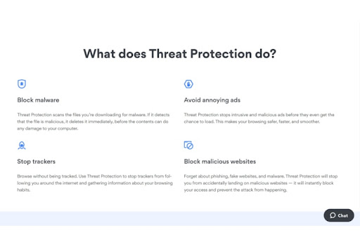 Threat Protection offers two levels of security, full and lite. The lite version uses DNS filtering to prevent your browser from visiting websites known for hosting malicious content and intrusive adverts. However, it doesn’t stop web trackers or scan your downloads for malware.