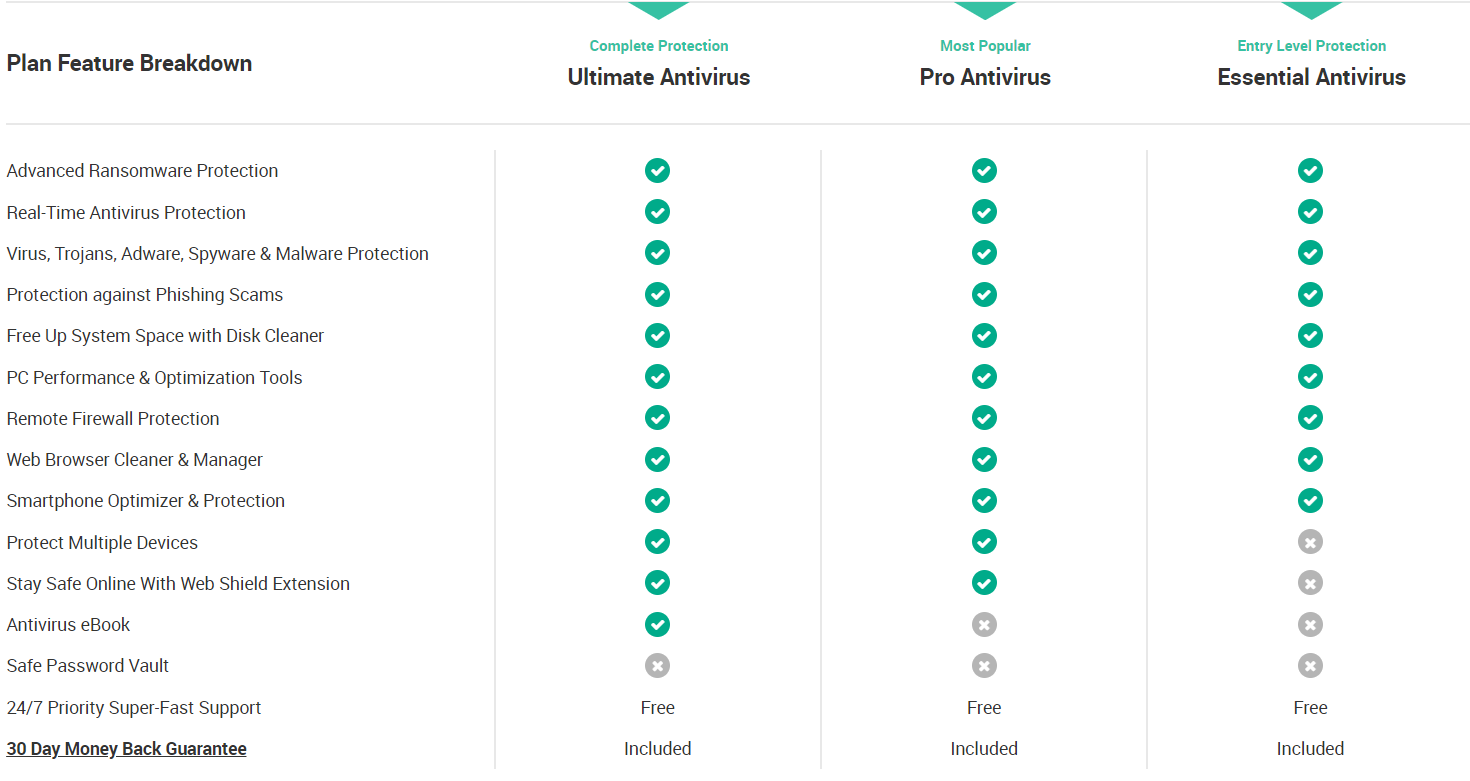Unless you have more than 3 devices that need protecting, the Essential package provides the best value for money. The Pro package includes everything in the Essential package plus the Web Shield Extension for Chrome. The Ultimate package includes everything in Pro plus an antivirus ebook.