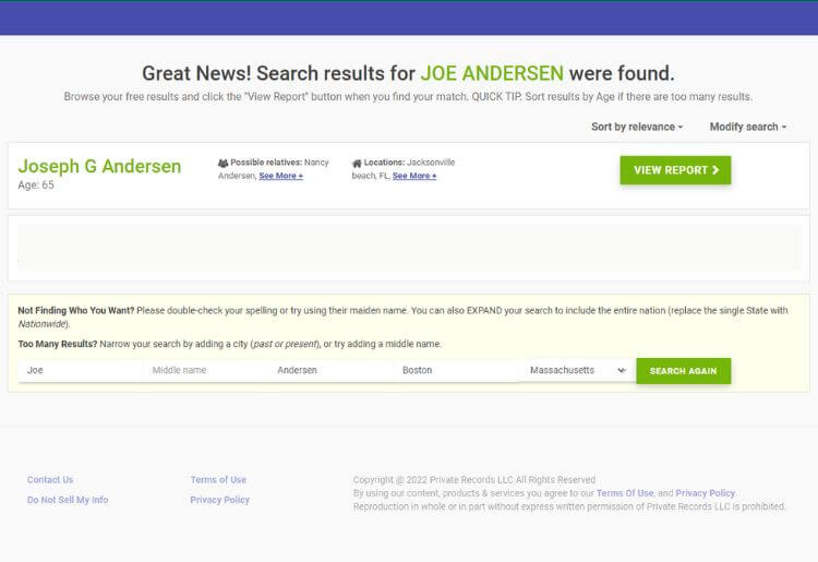 BackgroundCheckers is very easy to use. Unlike other people-search services, the platform doesn’t make you jump through hoops to find someone or access a report. Just enter their name, choose which of the potential matches you want to explore, and BackgroundCheckers will generate a report.