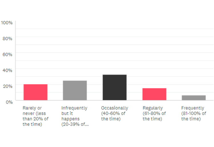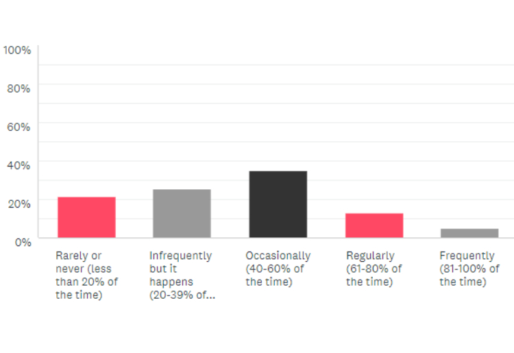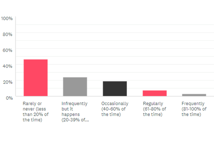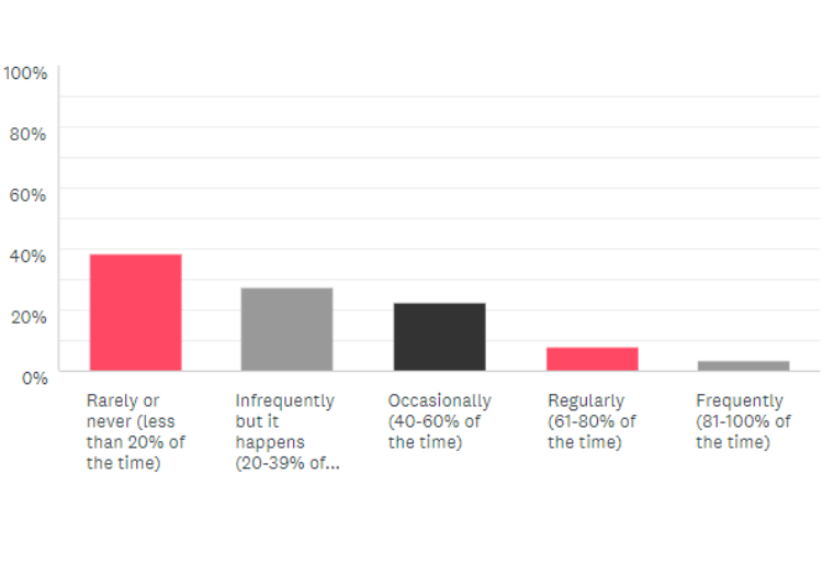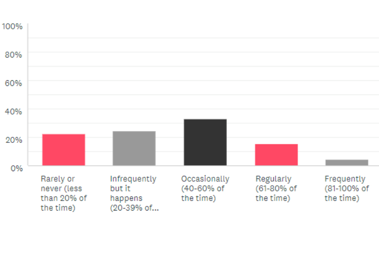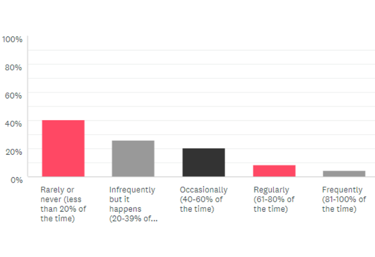 For example, when shopping in-person, only one-fifth of the survey respondents reported that they rarely or never make impulse purchases. Over half of the respondents said they make impulse purchases over 40% of the time they shop. Considering the negative connotations associated with the concept of impulse purchases, as evidenced by the many online articles about how to stop impulse shopping and even therapy programs devoted to this topic, we can safely assume that the reality is substantially higher.
