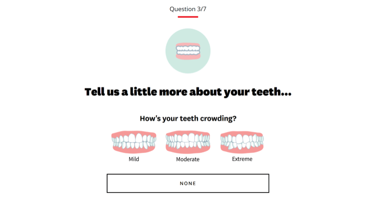 The first step is to find out whether you’re a candidate for Byte’s treatment program. This doesn’t take long at all. Simply head over to Byte’s assessment page and answer a 30-second quiz about the current state of your teeth including how much teeth crowding you have and whether you have any baby teeth left. After you’re finished, Byte will let you know if you’re eligible for its treatment system via email.