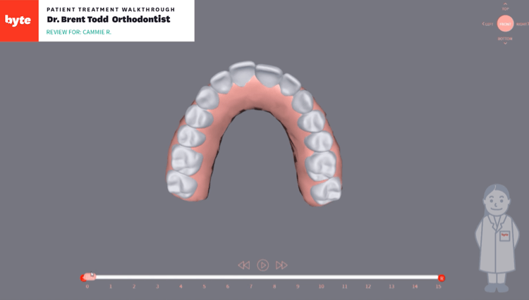 After that, you have to wait for your impressions to be used to create a treatment plan, which will be reviewed by a licensed dentist. If they think you’re a good fit for Byte’s treatment, they will use Byte’s Smile Science tech to create a preview of your new smile post-treatment. If you have any questions, they can create a digital video that shows how your teeth positions are projected to change over the course of treatment.