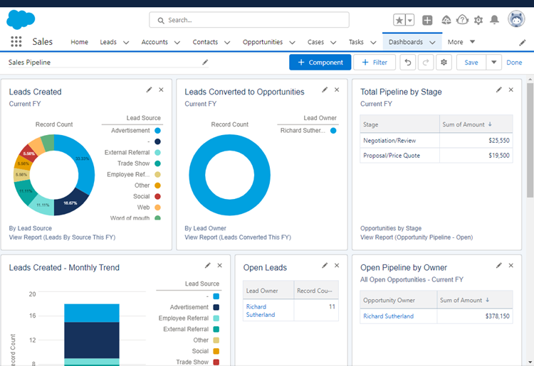 Salesforce has been set up with versatility in mind, as no two businesses are alike. You can add custom fields to records, create email templates, design your own reports and dashboards, and automate the tasks you perform daily.