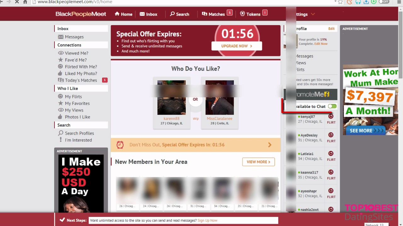 Thanks to BlackPeopleMeet’s lists, users can easily see who is currently online now and who viewed their profile. In addition, members can highlight their own profile by purchasing “Promote Me” tokens which will boost their profile’s visibility in other members’ searches.
