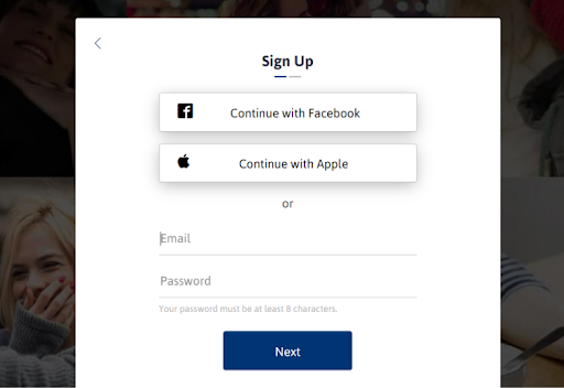 Signing up for Christian Mingle will take you a couple of minutes, tops. Click the Sign Up button on the website, then register with either your Facebook account, your Apple account, or your email. For the former, you’re asked to set a password and verify your email address. You must also fill in a few fields, including your date of birth and ZIP code.