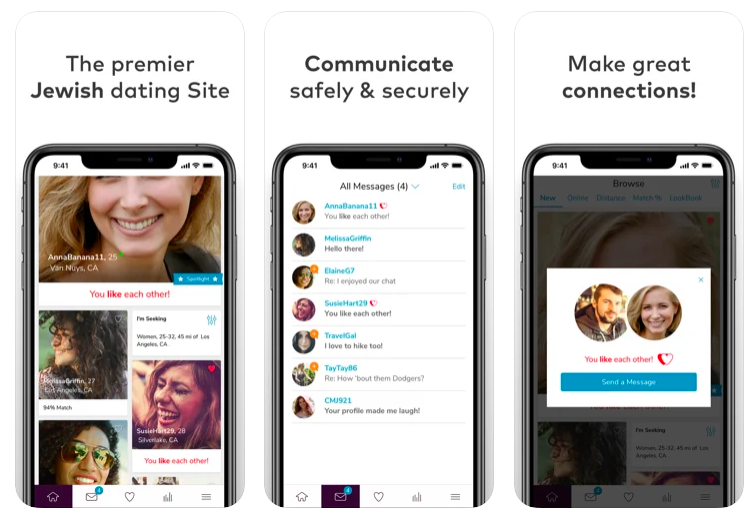 Jdate has an app that is available on both iOS and Android. The app matches the simple and accessible interface of their website and includes all of the same features as the website, including instant messaging and LookBook.