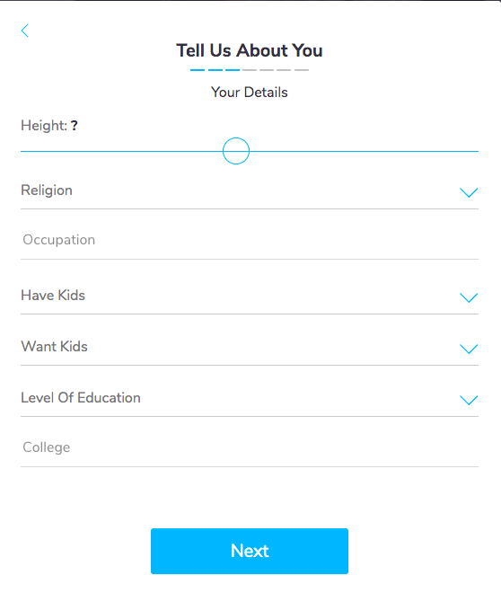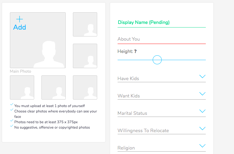 Once you’ve chosen your photos, you’ll be prompted to add some basic details about yourself, including height, occupation, and religion.