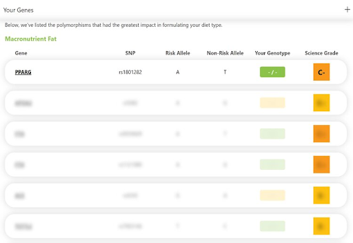 Finally, the report takes a closer look at each individual gene that Gene Food analyzes. This includes a science score from A-D, which provides more context about how well-established the link is between a specific gene and a metabolic trait.