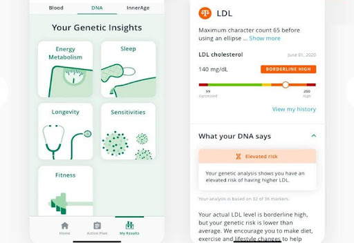 If you have both a DNA test and one or more blood tests, InsideTracker will analyze how your blood test results relate to your genetic profile. For example, if your genes suggest that you have a genetic predisposition towards high LDL cholesterol, but your blood test shows that you currently have low LDL cholesterol, InsideTracker will highlight that you are overcoming this genetic predisposition.