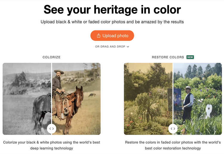 All you have to do is upload a black-and-white photo, and MyHeritage’s deep learning tools will automatically recolor them. (You can fine-tune this process manually using sliders). You can even restore the color of faded photographs, allowing you to get a more accurate view of what the photo looked like when it was originally shot.