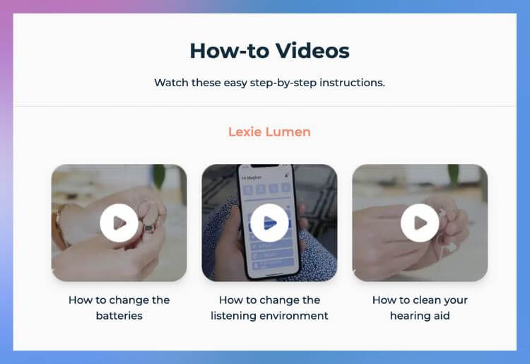 Lexie’s customer support team is available from 9 am–8 pm (EST) Monday–Sunday by phone or email, and we were able to connect with a representative immediately when we called. In addition, Lexie’s website has video tutorials to help you get started with your device, detailed user manuals, and a blog to explain the basics of hearing loss.