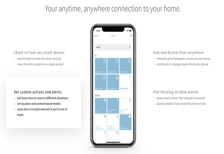 Scout Alarm is currently compatible with Amazon’s Alexa, Google Assistant, the free automation tool IFTTT (If This Then That), and other smart home devices. You can also use IFTTT to customize several other smart-home services.