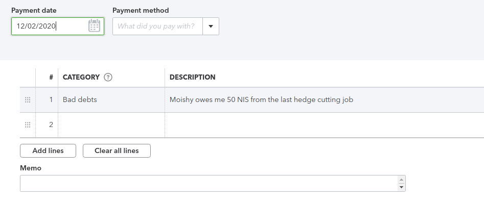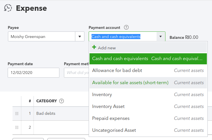 Additionally, users are also able to make note of what expense account was used to pay out from. Users can also use the expense functionality to write down bad debts that have not been collected.
