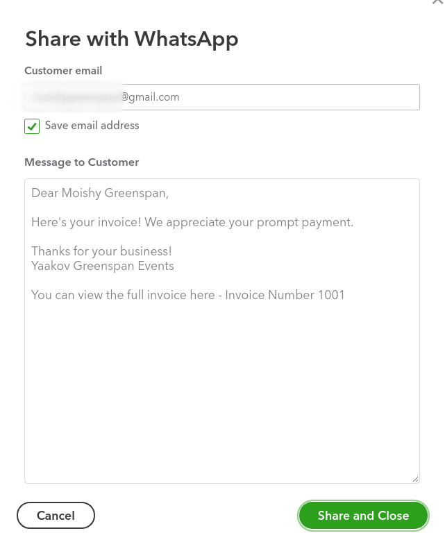 Modern business is conducted by email, over the phone and …. By WhatsApp! QuickBooks gives users the ability to quickly download a copy of the generated invoice, send it by email or quickly send it through the WhatsApp messaging system.