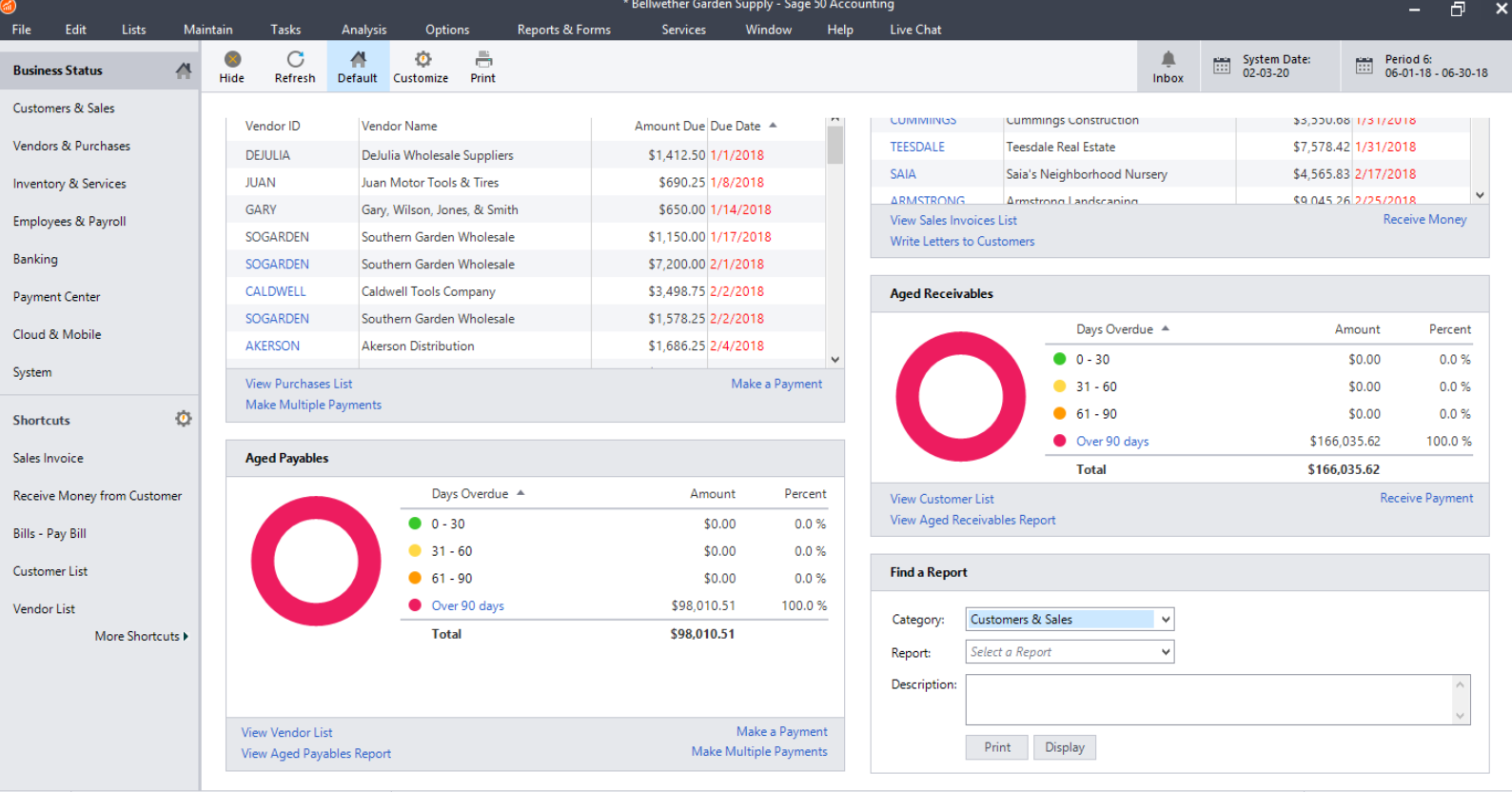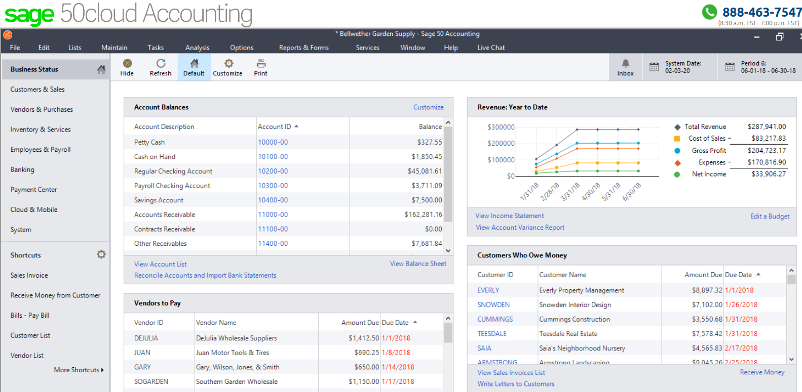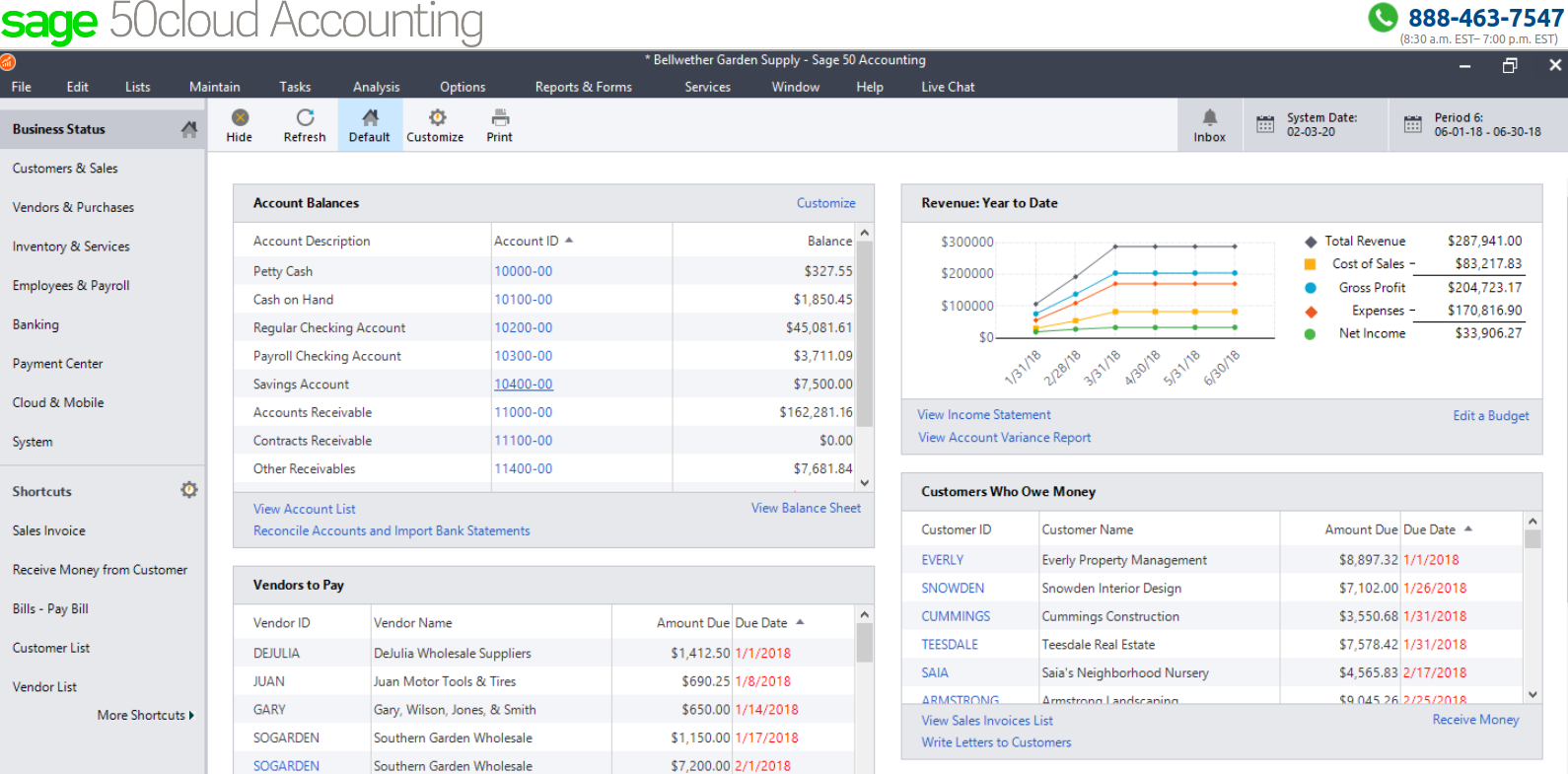 The front page of Sage 50cloud Accounting provides an overview of key business metrics. This is great for financial teams that need a high level overview of their credit control and financial performance.
