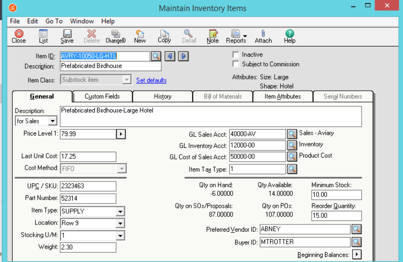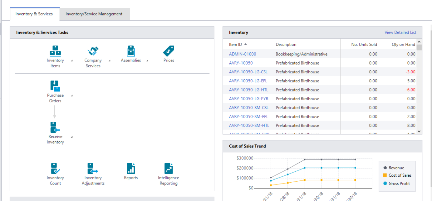 Sage50cloud Accounting includes a very mature system for creating an inventory of all goods and services the company is selling.
