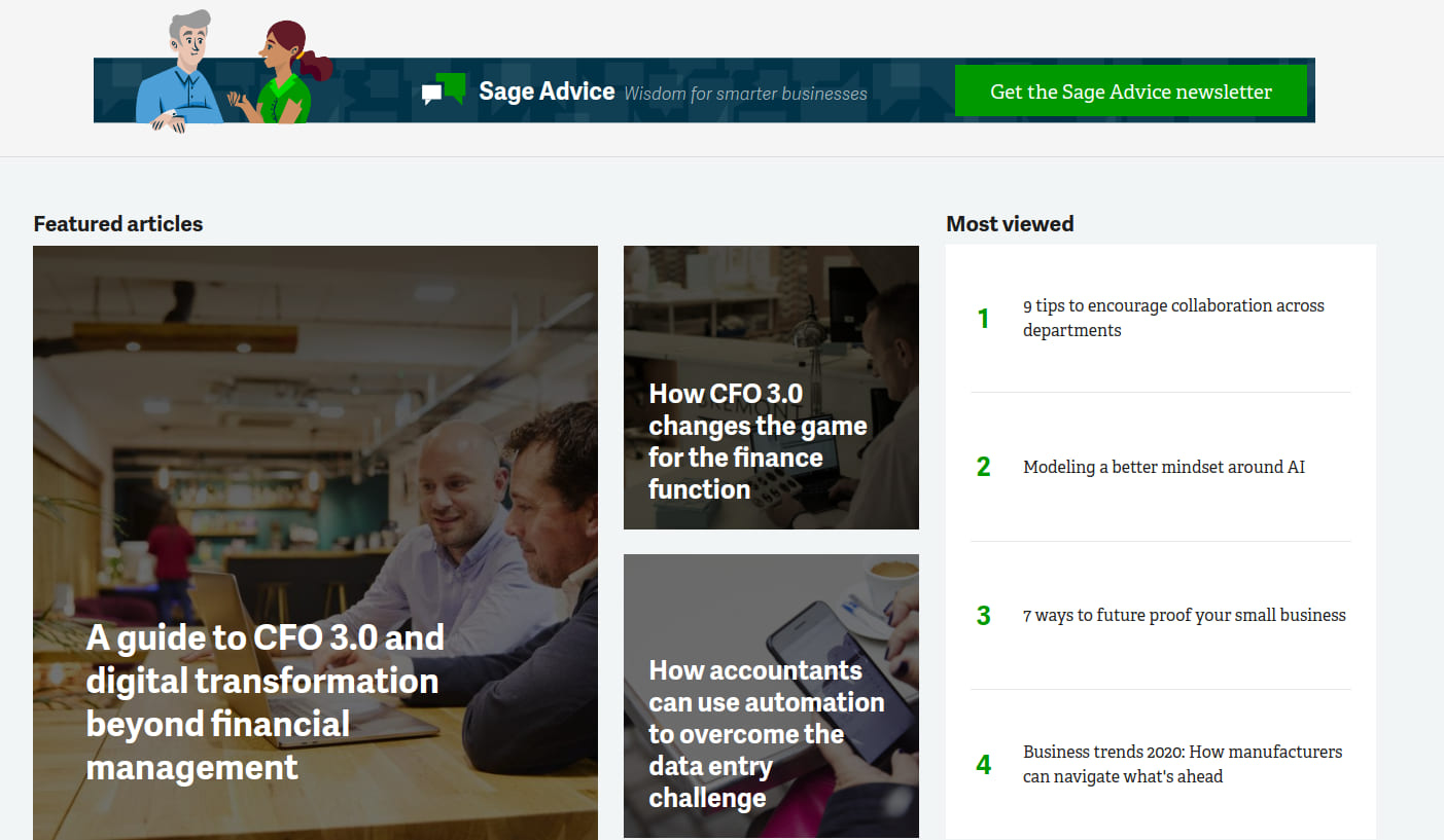 Sage Advice is an online knowledge center that the company has developed to help guide businesses toward staying compliant with a variety of taxation and data governance directives.
