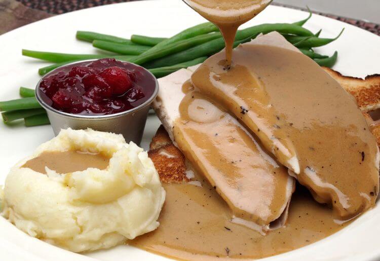 The main holiday menu includes the staples: carved turkey and gravy with sauteed green beans, grain-free stuffing, and a sweet potato mash.