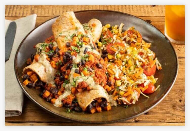 Sweet Potato Enchiladas with Cabbage-Carrot Slaw and Cashew Crema