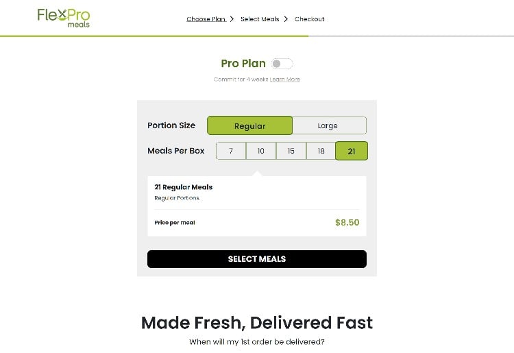 To start with FlexPro meals, go to the company website. Then, simply choose your meal size, decide how many meals you want each week, select your meals, and create an account.