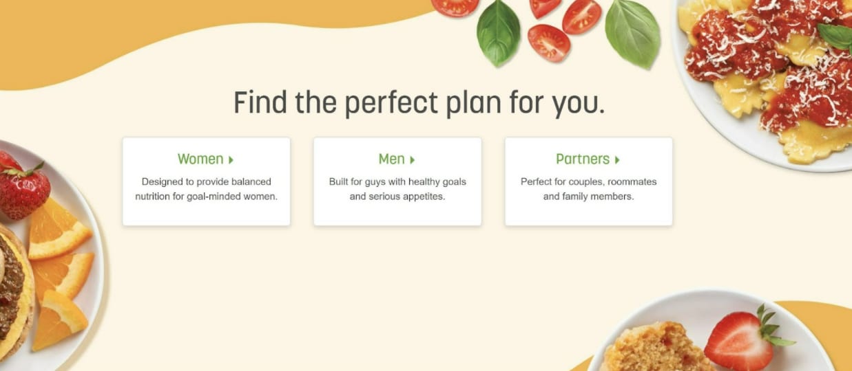 Men’s: Men’s plans have three options including Men’s Basic, Men’s Uniquely Yours, and Uniquely Yours Max. You can choose from 100+ different meals with larger serving sizes for men’s higher calorie needs.