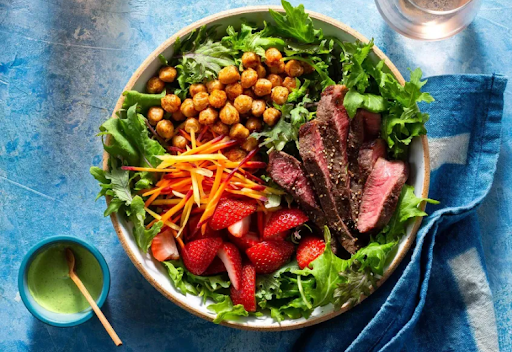 Sunbasket's Lean & Clean plan offers protein-packed recipes to boost your gains while helping you manage your weight. These flavorful meals, averaging around 550 calories per serving, are high in protein and fiber but free from gluten and dairy. You'll enjoy dishes like the "Steak salad with strawberries and spiced chickpeas," which contains only 400 calories per serving.