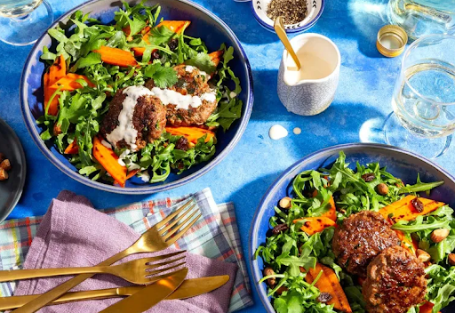 Explore global flavors while keeping carbs in check, like the "Marrakech lamb merguez patties with warm carrot salad" that brings North African cuisine to your table.