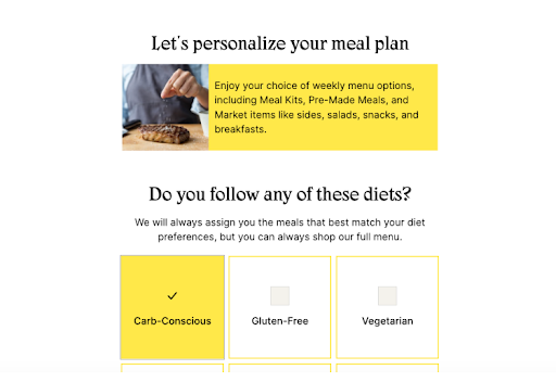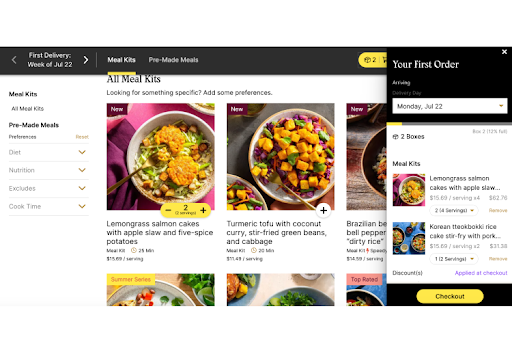 When you sign up, you choose a meal plan that fits your dietary preferences, from Paleo to Vegetarian and everything in between. You can select Meal Kits to cook yourself or Fresh & Ready meals for quick heating, with at least four servings per week. The service allows you to mix and match options from their full menu, starting at $9.99 per serving, with free shipping on your first delivery.