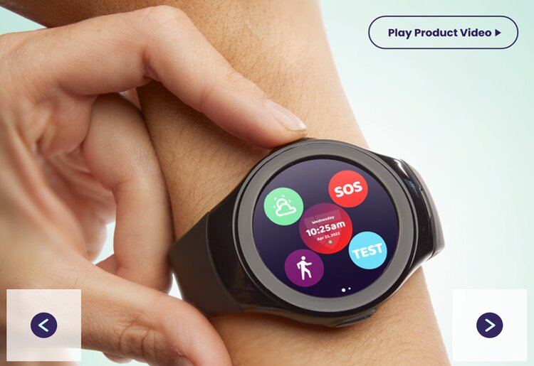 The MGMove is an on-the-go medical alert device that offers many of the features of a smartwatch. It is designed to fit on your wrist and has an on-screen emergency button as well as a small physical emergency button on the watch frame.