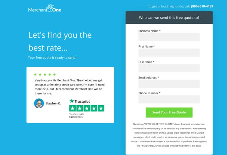 Merchant One provides customer service via phone, email, and an online contact form. I believe live chat should be a standard feature for every customer support, but this service isn’t available.
