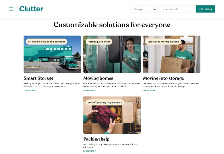 However, some of your questions can be answered by exploring Clutter’s help center, which offers in-depth articles on moving and storage.