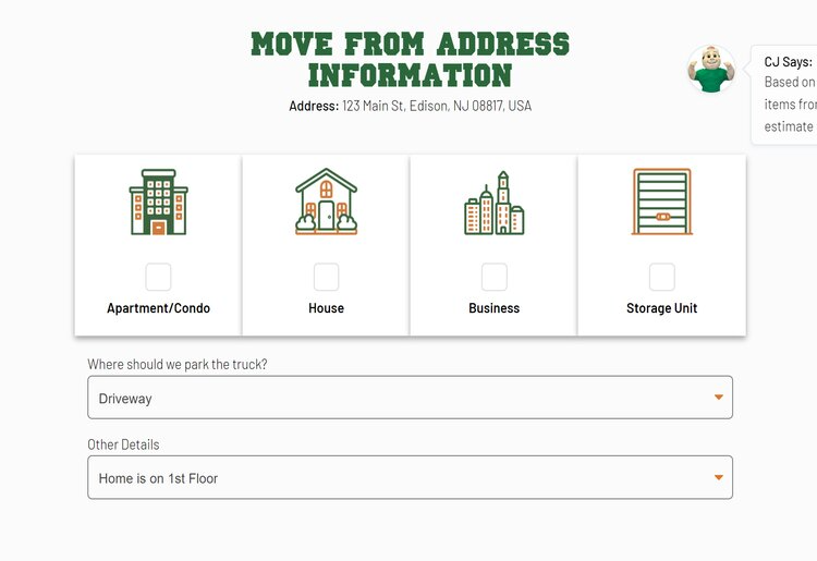The online quote form is very detailed. It asks about the types of appliances you plan to move, whether you have any items that require two people to lift, and where the truck can park during loading and unloading. As a result, I found that the quotes that College HUNKS Hauling Junk & Moving® provides are relatively accurate.