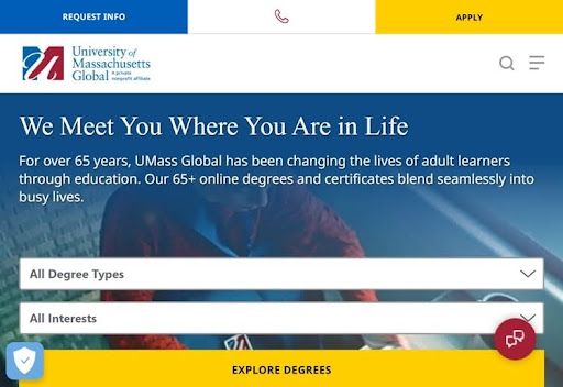 UMass Global is an accredited online university affiliated with the flagship school of the state of Massachusetts. Its 55+ online degrees, certificates, and credentials are carefully crafted to offer adult learners the freedom to meet their educational goals while balancing work and personal commitments.