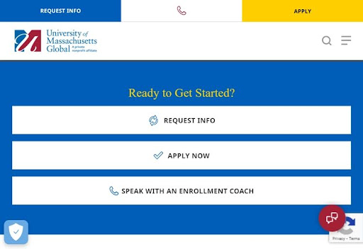 UMass Global will connect you to an enrollment coach to guide you through admissions. An online course demo video will familiarize you with the online classes, and a financial advisor will also show you the funding options available.
