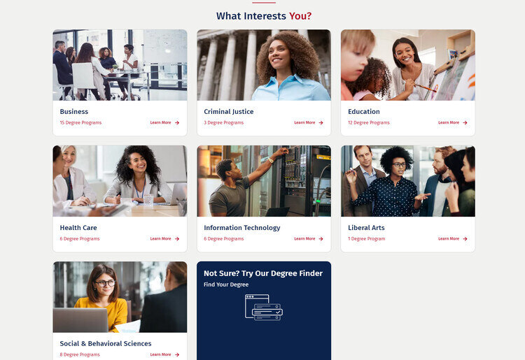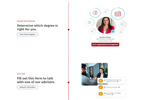 Once you find a degree program you’re interested in, you can request more information. You’ll need to provide your name, email, and phone number. An enrollment officer will contact you by phone to explain the enrollment process, including tuition costs and how to transfer credits. You’ll then receive access to the online application, which you can submit with no application fee.