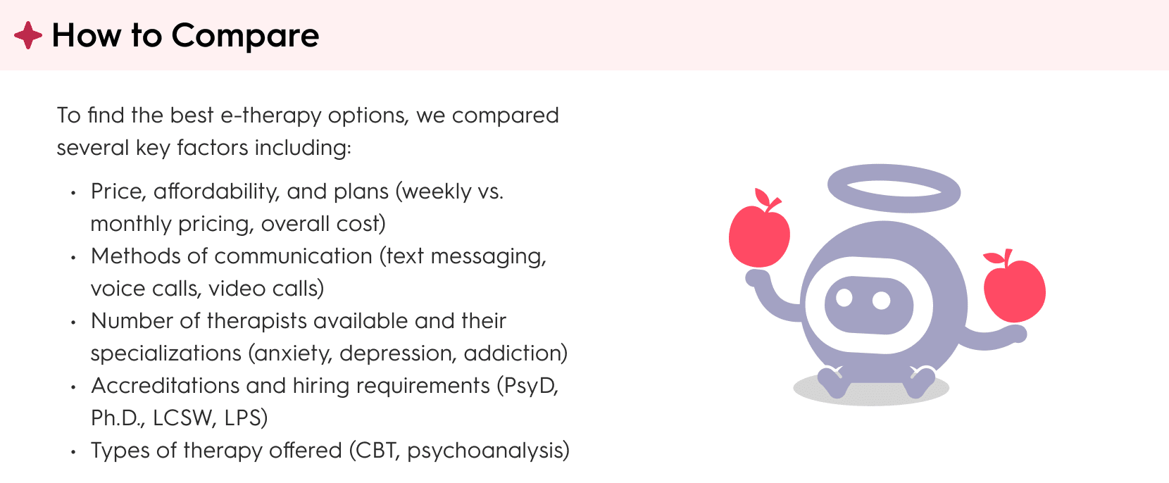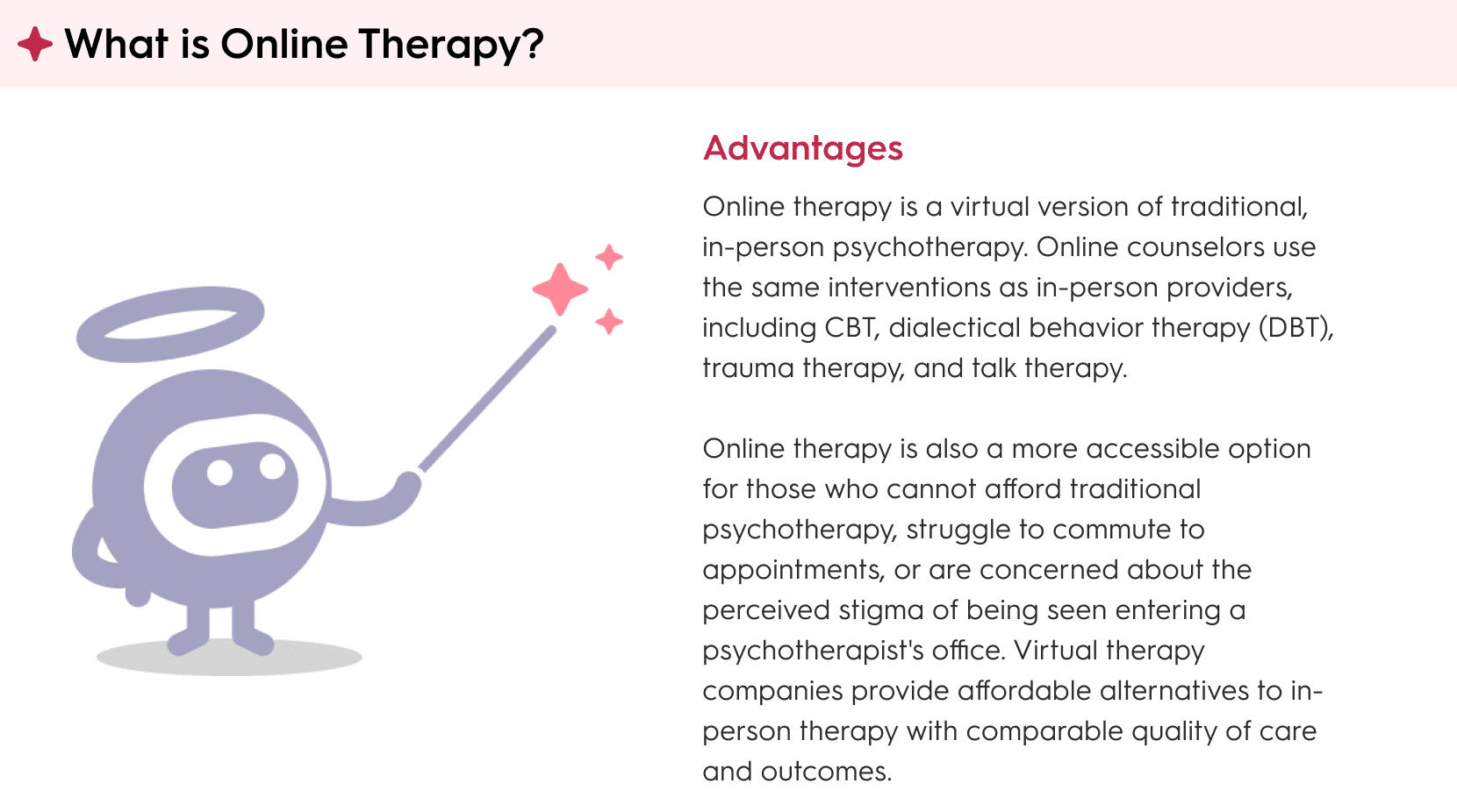 Our experience: BetterHelp reviews are positive and the service is reasonably priced. We like the fact that BetterHelp counselors each go through a rigorous vetting process.