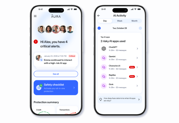 As AI chatbots popularity increases among kids of all ages, Aura Parents monitors these interactions and provides parents with the tone of the messages sent as well as alerts for when a high-risk AI app has been used.