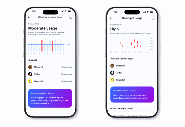 Daily vitals: Know when tech is helping — and when it’s getting in the way. These features highlight trends in sleep opportunity, daytime device usage, and social patterns to help parents notice shifts in habits.