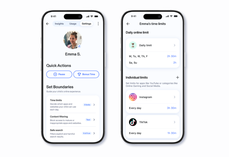 Screen time limit & Pause the InternetⓇ: Set daily time limits for specific apps or websites. Use the Pause the Internet® feature to instantly disable access on a child’s device for dinner or offline time. Once the limit is hit, they will be unable to access that app or the internet for the rest of the day, unless you award them Bonus Time.