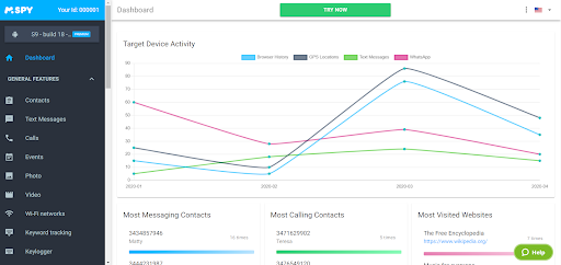The mSpy app itself is easy to use. To access a feature (e.g. Contacts, Wi-Fi Networks, WhatsApp), simply find it on the menu on the left-hand side of the dashboard. With one click, you’ll instantly be able to see your child’s recent activity.