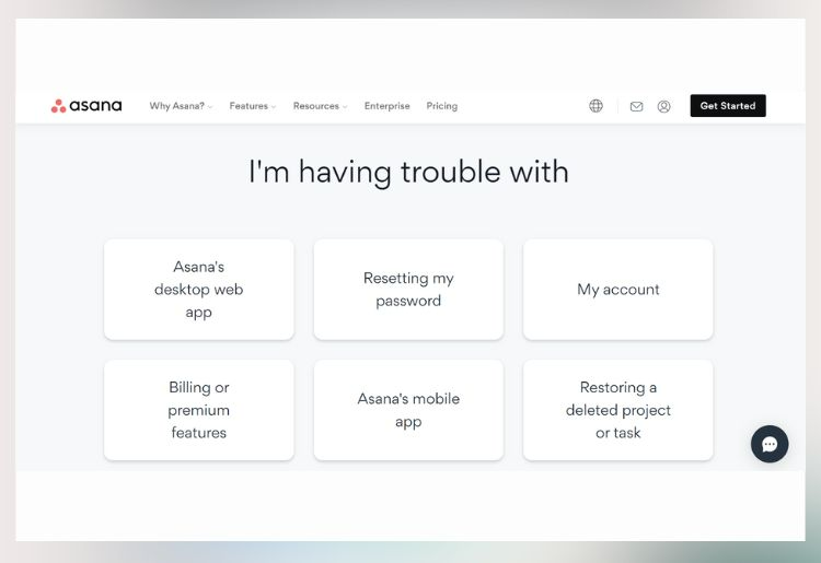 Asana offers customer support through an online form. To access the form, you must first answer a few questions with a chatbot. Asana typically replies within a few hours.