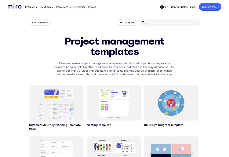Miro Project Management enables you to create visual workflows and collaborative plans. It’s very user-friendly, and there are 1000+ templates on which you can base your work. This can help you optimize workflows and make your business more efficient.