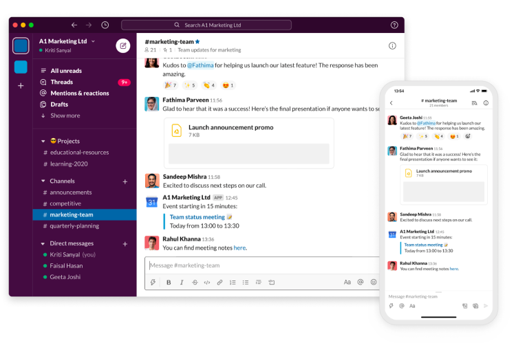 Slack offers a user-friendly and secure mobile app for iOS and Android devices, providing convenience for collaboration on the go. The app includes several features to enhance productivity, including: