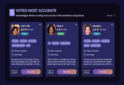 Psychic Source also has a wider range of features compared to Nebula. However, it doesn’t beat Nebula on price, and the latter offers more free-to-use resources through its mobile app.