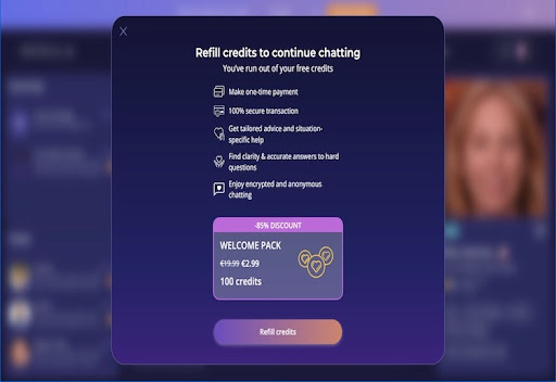 You’ll need to top up with credits to speak to a reader. These translate to a payment of $2 per minute. However, some readers may offer the first three minutes for free or other sign-up deals so you can first check whether it’s a good fit.