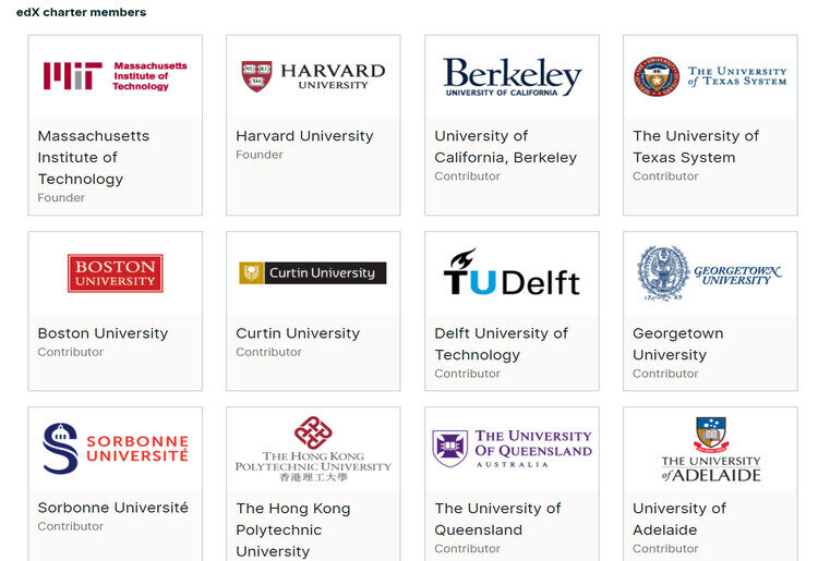All edX courses are offered in partnership with major global universities or companies. Some of edX’s partners include Harvard University, Australian National University, Caltech, McGill University, Sorbonne Universite, Google, Amazon, Microsoft, and IBM.