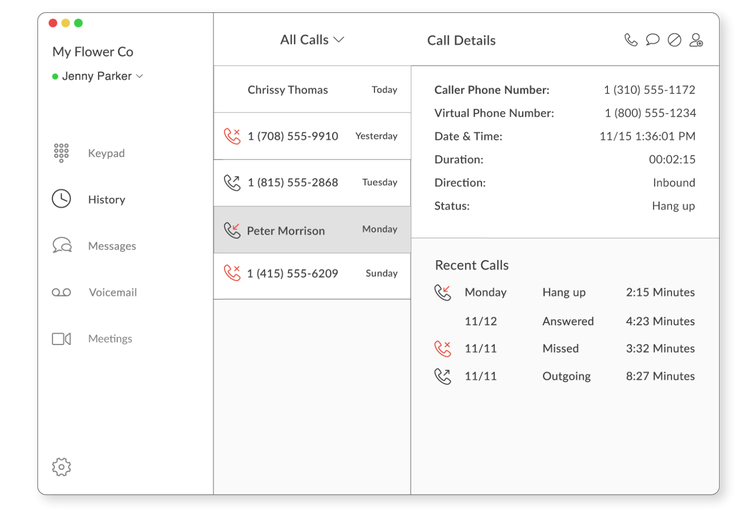 TalkRoute offers detailed data about your calls, including the date and time, duration, caller ID, and more. A built-in analytics dashboard lets you filter through this data to see how much time any employee is spending on the phone and how many calls are going to voicemail.